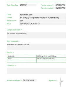 Buy EZP-3P 24mg – (10 vials/Kit) online in a controlled laboratory setting, scientists can explore its interactions with various receptors and its downstream effects. The high purity of Nexaph’s EZP-3P 24mg – (10 vials/Kit) ensures that observed results are due to the peptide itself rather than impurities, allowing for clearer data interpretation.